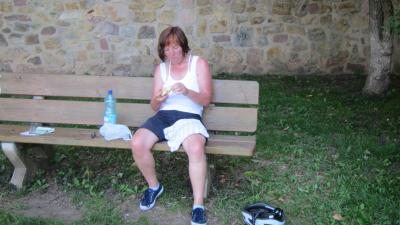 Der heutige Tag begann etwas 'anders'. Wegen des länger anhaltenden Lärms vom Sommerfest, war an frühe Ruhe nicht zu denken, so dass wir erst gegen 9:00 zum Frühstück erschienen. Justamente in dem Augenblick kam der 'Herr Randonnee' und wollte unser Gepäck. Soo weit waren wir noch lange nicht, und der Herr entschloß sich, vorher eine andere Route zu bedienen. Unser Glück.